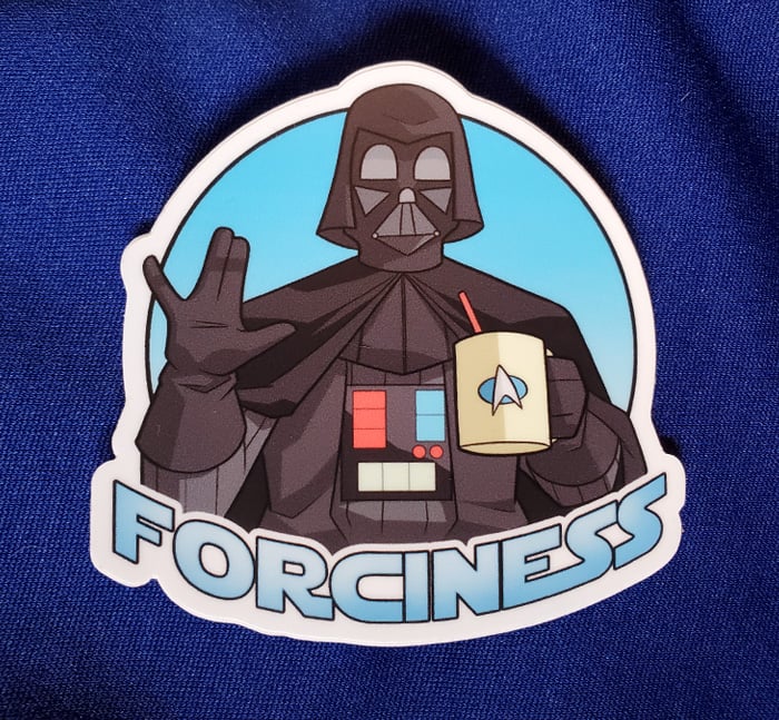 This is a high-quality 3-inch die cut 'Forciness' sticker featuring our favorite coffee-drinking Sith Lord.